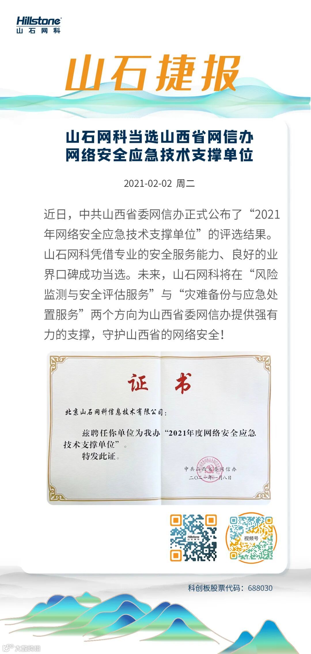 【GT园区动态】山石网科当选山西省委网信办“2021年度网络安全应急技术支撑单位”