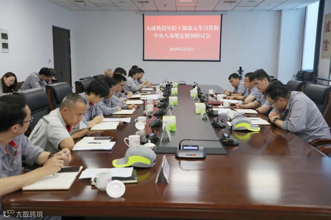 6月26日,大成科技召开年轻干部深入贯彻中央八项规定精神学习教育专题研讨会。公司党委书记、董事、总经理袁勇主持会议并讲话。公司领导班子,各部室、车间、中心负责人以及中层助理级以上年轻干部参加会议。