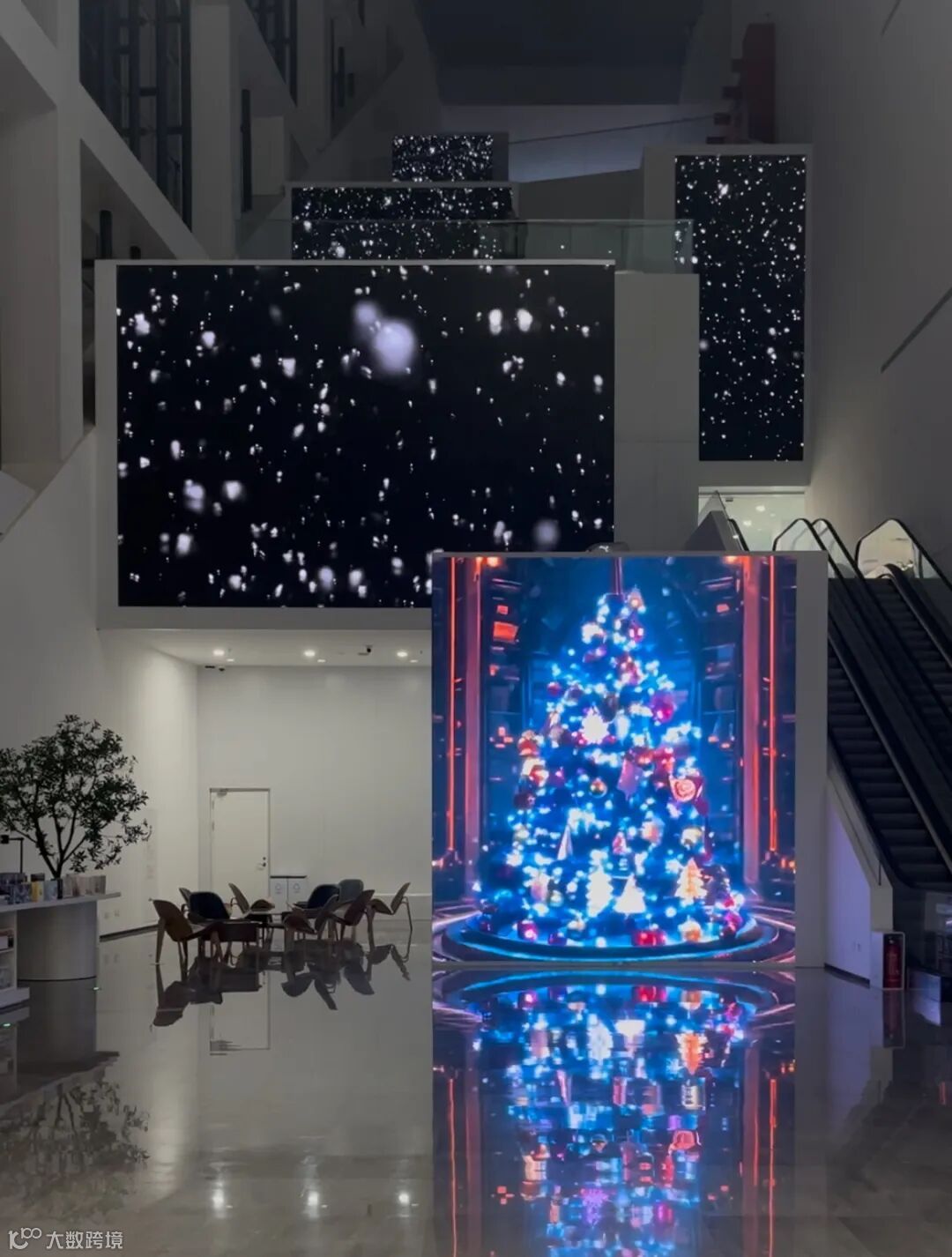 配合圣诞氛围,艺术馆中庭的五联屏将带来全新视觉享受。