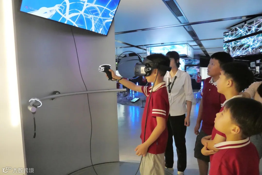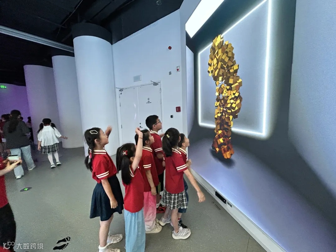 “好神奇,我仿佛进入了外太空!”“只要站在屏幕前,我就可以拍到各种各样的人面陶纹照片啦!”“挥一挥手,我也可以创作水墨画啦!”7月30日下午,苏州湾数字艺术馆迎来了一群充满好奇与活力的小探险家——苏州"交投娃"暑托班的43名小朋友。他们在这里沉浸式体验了数字艺术的独特魅力,开启了一段跨时空虚实相生的多维探索之旅。