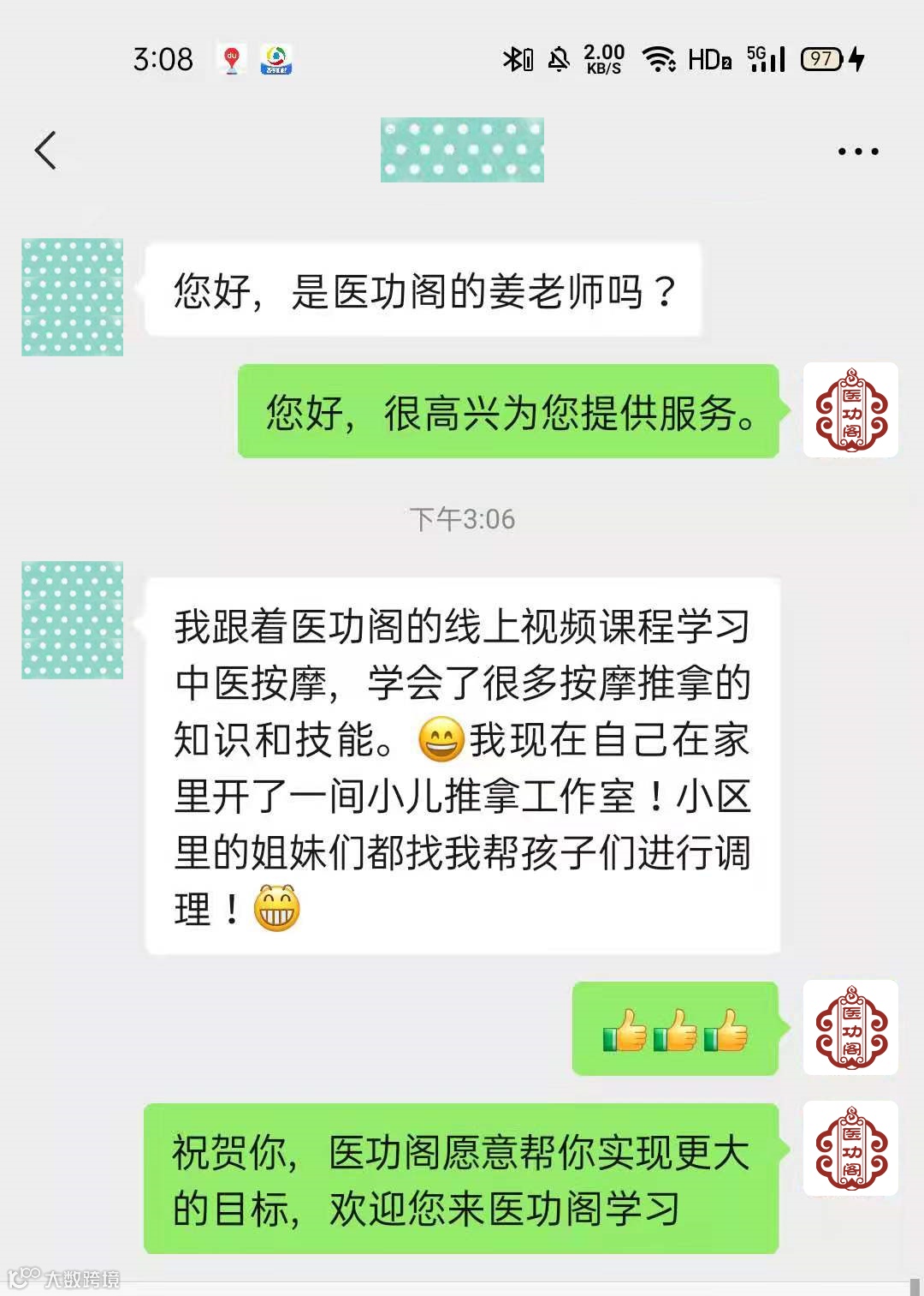 大量中医药爱好者,学会医功阁的专家课程后,在家做了小儿推拿、艾灸、正骨、养生调理等类型工作室,轻松实现副业月收入过万!