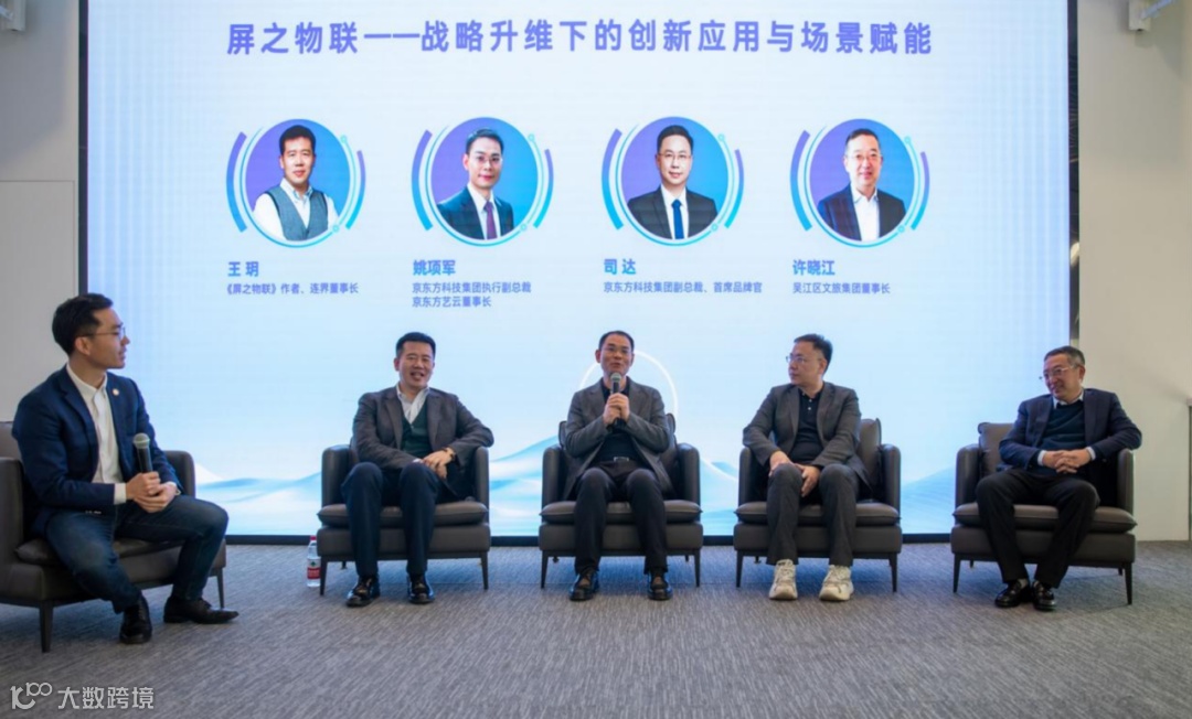1月16日,由连界创新、中信出版集团共同出品的以京东方科技集团为范本案例的《屏之物联》新书品读会在苏州湾数字艺术馆举办,《屏之物联》作者、连界董事长王玥,吴江区文旅集团董事长许晓江,京东方科技集团执行副总裁、京东方艺云董事长姚项军,京东方科技集团高级副总裁程刚,京东方科技集团副总裁、首席品牌官司达等出席活动。