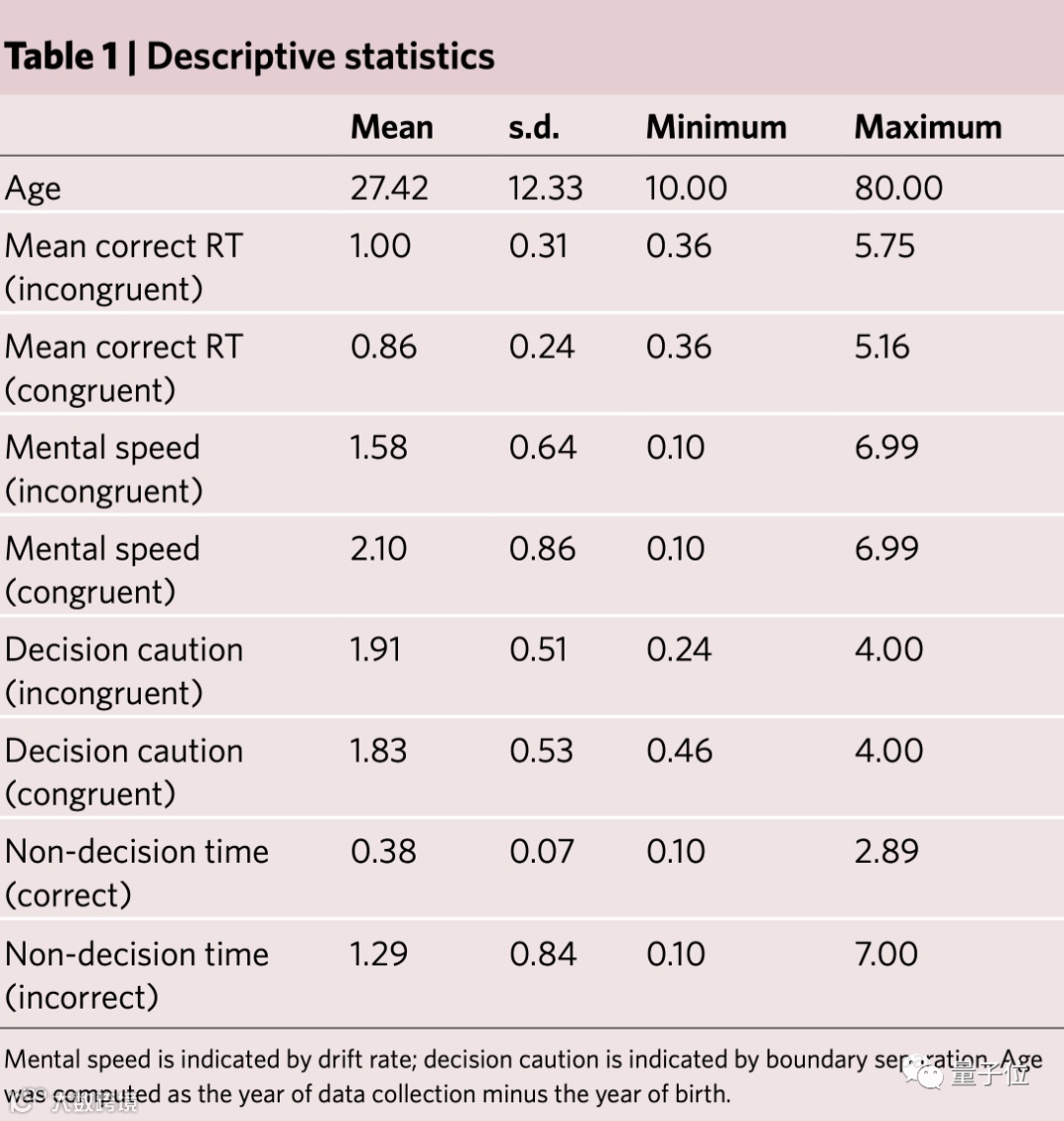 于是,本次研究团队另辟蹊径,只针对其中参与者年龄性别等统计特征、反应时间和分类准确性数据做了分析。