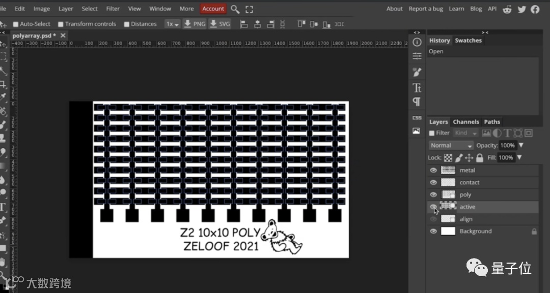 Zeloof对此解释说,因为他的芯片只有4层需要设计,所以用PS会比其它软件来得更简单一些。