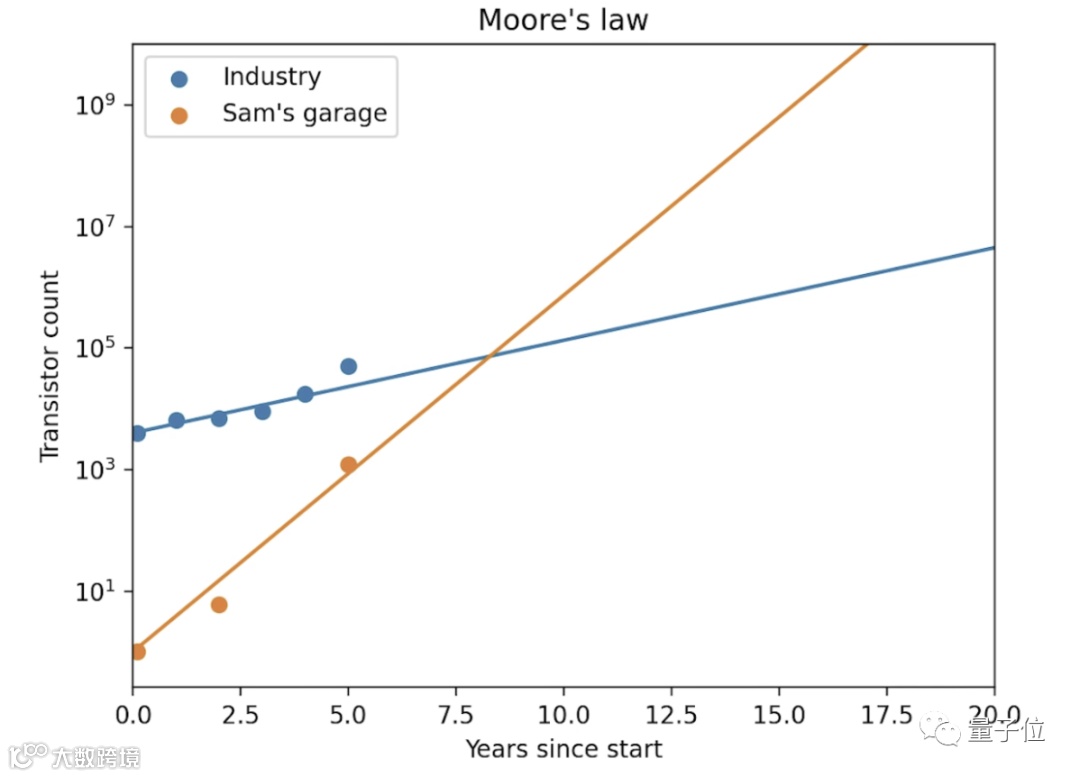 也难怪Zeloof敢半开玩笑地说出“超过摩尔定律”的话了(还给自己做了张图表):