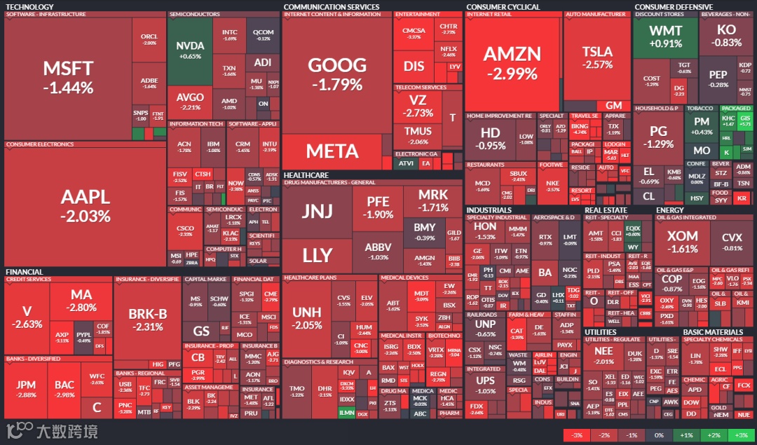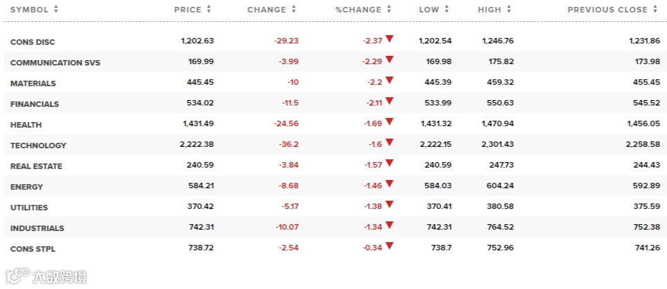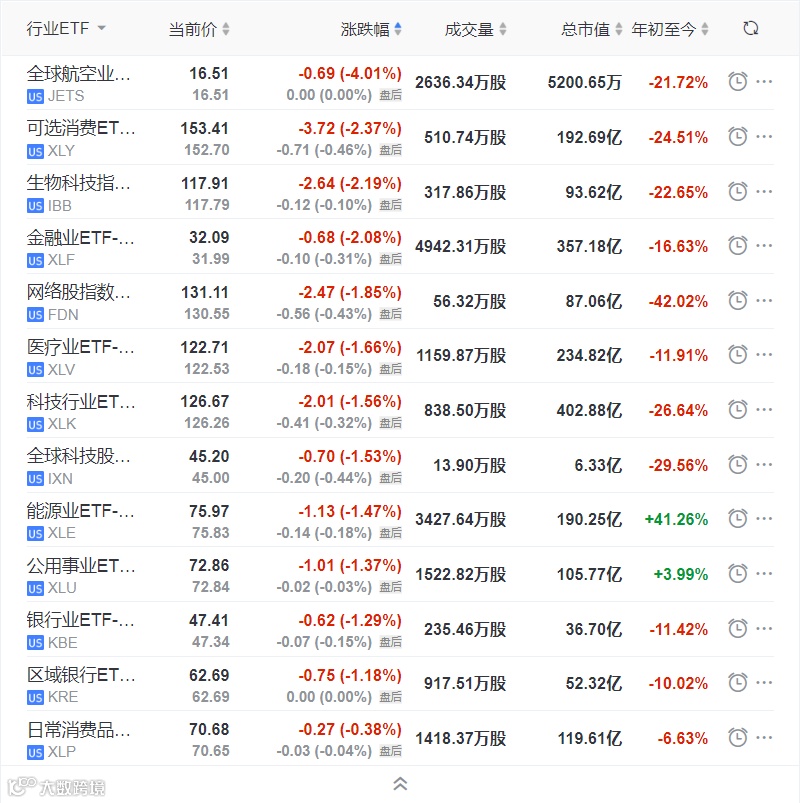 标普500指数的11个板块和美股行业ETF全军覆没。