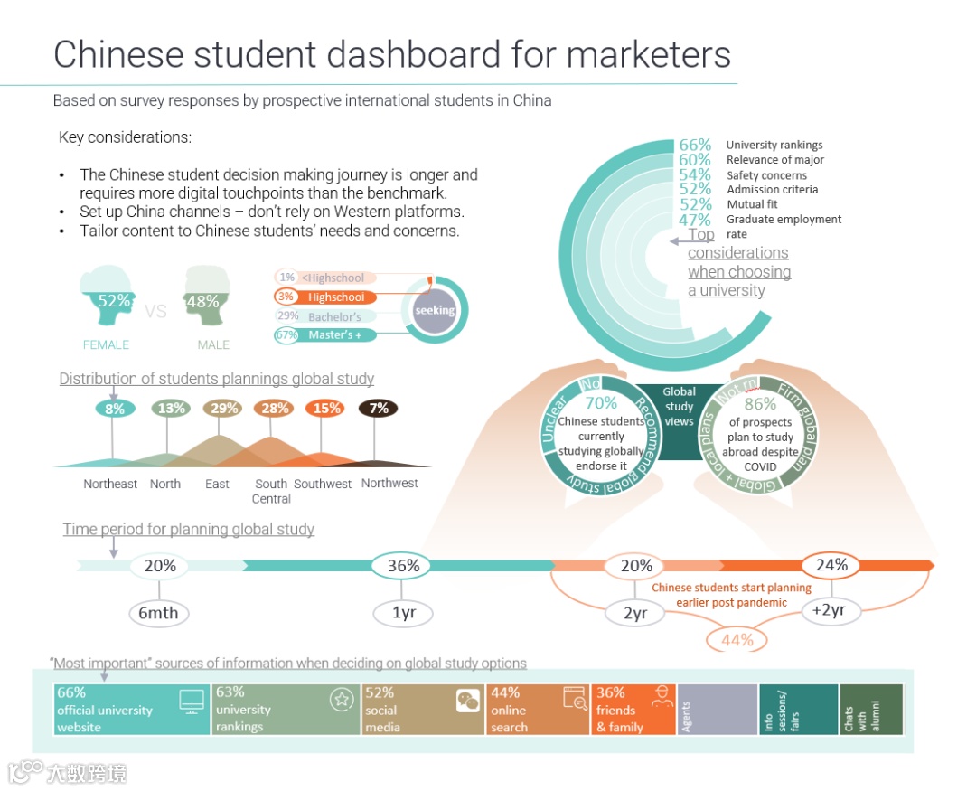 新一代的中国国际学生正在到来。我们为大学的招聘人员和营销人员建立了中国国际学生市场信息图,能够帮助您快速了解他们的关注点、优先事项以及影响他们做出海外留学决定的渠道。