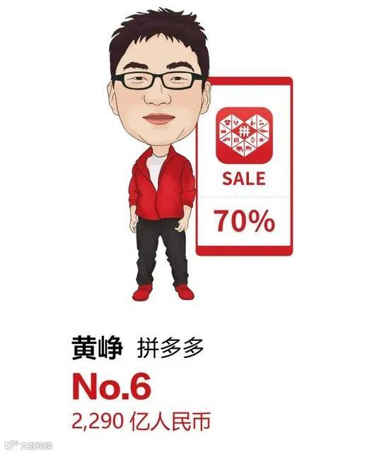 41岁的黄峥财富比去年增长 90 亿元,以2,290 亿元位列第六,比去年上升两位,但比今年最高峰时还是下降了 2,000 多亿。今年 3 月黄峥辞去拼多多董事长职务,表示将专注于食品科学和生命科学领域,为十年后的拼多多探索高速高质量纵深发展的新空间。与此同时,黄峥及其团队设立的繁星公益基金会将在未来三至五年向浙江大学教育基金会捐助超过 6 亿元,推动浙江大学在生物、医疗、农业、食品等多领域交叉方向展开基础研究及前沿探索。拼多多去年全年实现营收 595 亿元,同比增长 97%。拼多多位列今年胡润世界 500 强第 93 名。黄峥今年首次成为中国首善,以 120 亿元的捐赠额位列胡润慈善榜榜首。