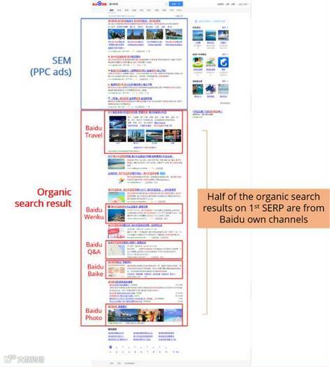 In addition, China has a unique online ecosystem. The Chinese search engine has many diversified channels such as portals (Baidu News) and community (Baidu Baike, Baidu Q&A, Baidu Tieba). Users can find information from all channels in the search engine results. Users can discuss related topics on Baidu Q&A, Baidu Tieba and can also submit information such as a company or product introduction, research paper, etc on Baidu Wenku. Those Baidu owned channels/website hold the highest ranking on the SERP when searching for related keywords because of Baidu’s high weight and authority.