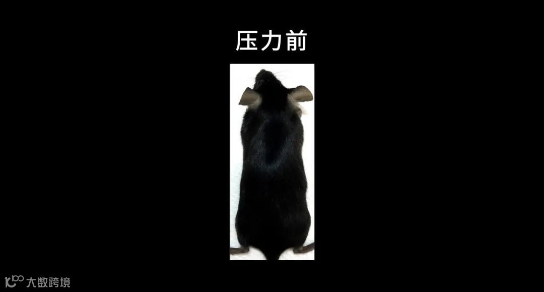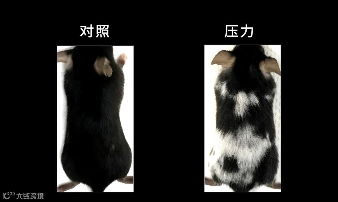 我们做的实验非常简单。有一种小鼠它先天就没有免疫细胞,我们只要给这种小鼠施加精神压力,看看它会不会长白发就行了。左边是实验前。右边是给它施加压力之后。