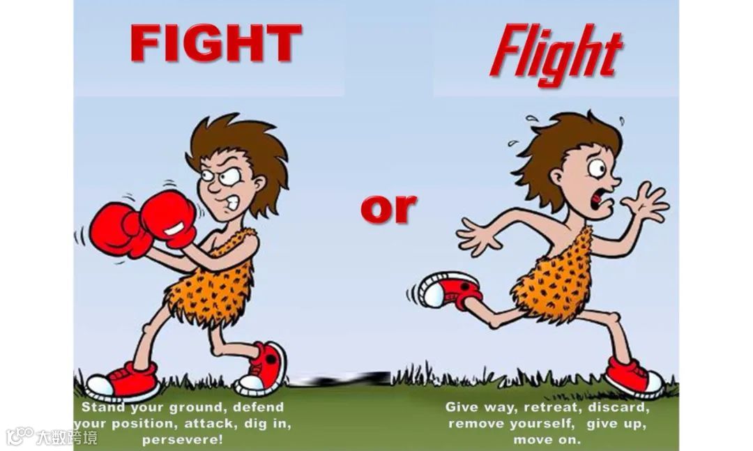 交感神经系统「缠绕」在我们身体里绝大多数的组织和器官当中,它在应对压力时非常活跃,并驱动着对人体来说非常重要的「战斗或逃跑反应」:在有压力的情况下,交感神经系统会被激活,我们会心跳加速、出汗,肌肉也会变得更加有力。对于原始人类而言,遭遇野兽时可能是战可能是逃,这种瞬间的应激反应对我们的生存来说是非常重要的。