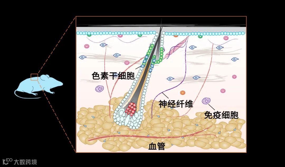 有几种可能性。其实跟大部分人想的不一样,皮肤结构是比较复杂,它里边有非常多不同种类的细胞和组织。比如它有丰富的神经纤维,可以让我们感知周围的环境;它有很多免疫细胞,可以让我们对抗病原微生物;它还有血管、脂肪细胞等等。那会不会是它们当中的某些细胞,间接地传递了压力的影响?