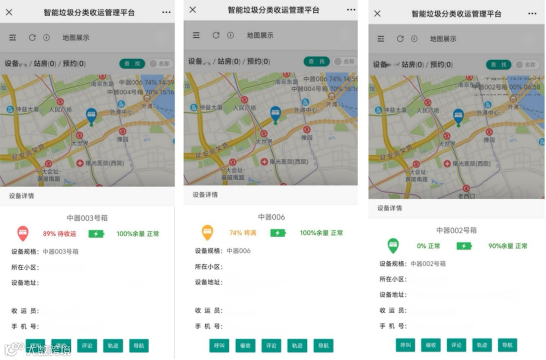 中器通过全链数字化系统调度、互联政府一网通云端协作,全流程精细化管控,配合箱体内智能感应装置——箱满自感、集满即走,数字赋能提升效率。