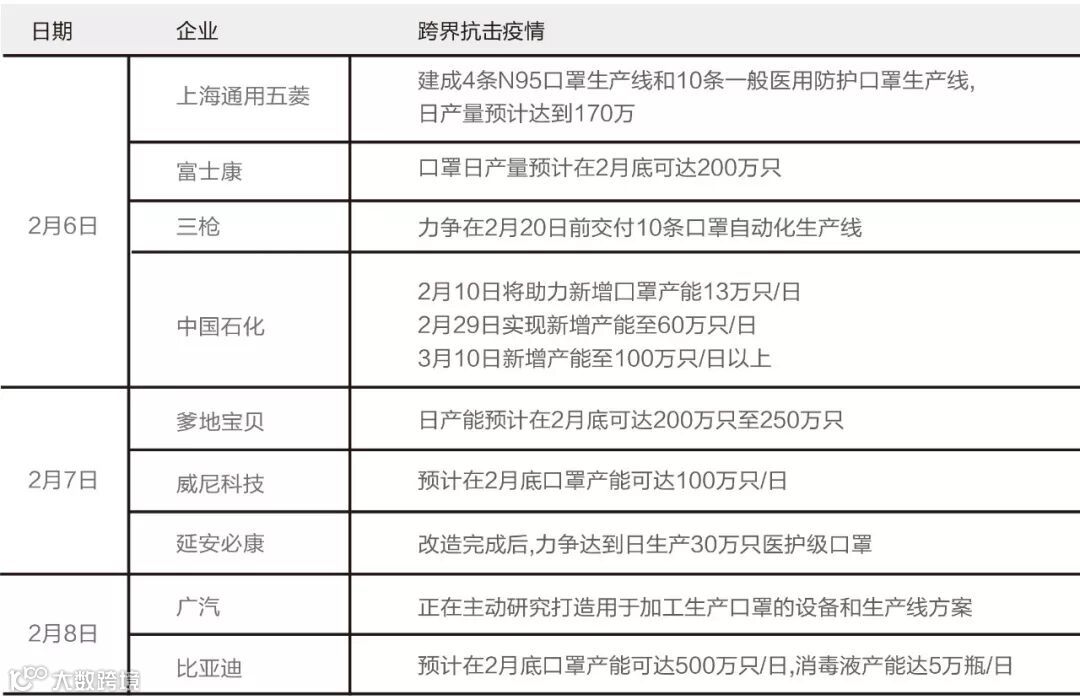 以工商注册变更信息为标准,自2020年1月1日至2月7日,全国超过3000家企业经营范围新增了“口罩、防护服、消毒液、测温仪、医疗器械”等业务,进一步增加国内口罩产量,缓解供需矛盾。