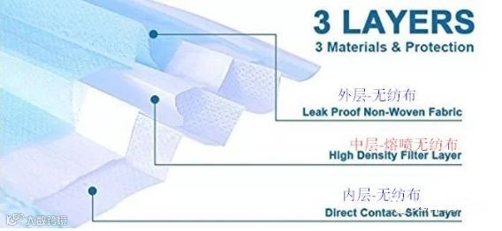 现阶段,国内医用口罩作为医疗器械管理,医用口罩产品一般由三层无纺布制成,其中外层为纺粘无纺布,做防水处理,采用防飞沫设计,阻隔体液、血液等液体;中层为熔喷无纺布,采用经过驻极处理的聚丙烯熔喷无纺布,为过滤核心;内层主要使用ES无纺布,起到吸湿作用。