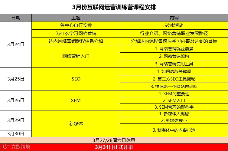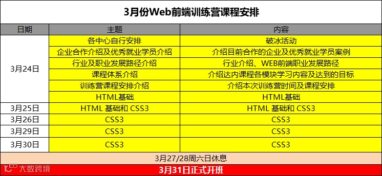 正式开班时间:3月31日