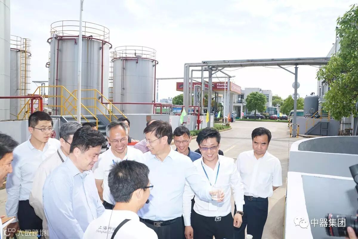 2017年6月15日下午,在上海市许昆林副市长率领下,市食药监局局长杨劲松、副局长许瑾、张准民、市绿化市容局副局长唐家富等领导视察上海中器环保科技有限公司,亲临现场的还有上海杭州湾经济技术开发有限公司张天荣总经理等领导。