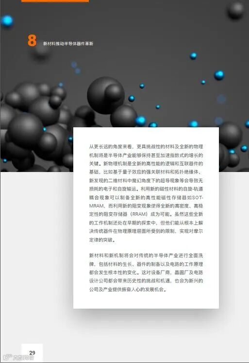 【趋势概要】在摩尔定律放缓以及算力和存储需求爆发的双重压力下,以硅为主体的经典晶体管很难维持半导体产业的持续发展,各大半导体厂商对于3纳米以下的芯片走向都没有明确的答案。新材料将通过全新物理机制实现全新的逻辑、存储及互联概念和器件,推动半导体产业的革新。例如,拓扑绝缘体、二维超导材料等能够实现无损耗的电子和自旋输运,可以成为全新的高性能逻辑和互联器件的基础;新型磁性材料和新型阻变材料能够带来高性能磁性存储器如SOT-MRAM和阻变存储器。