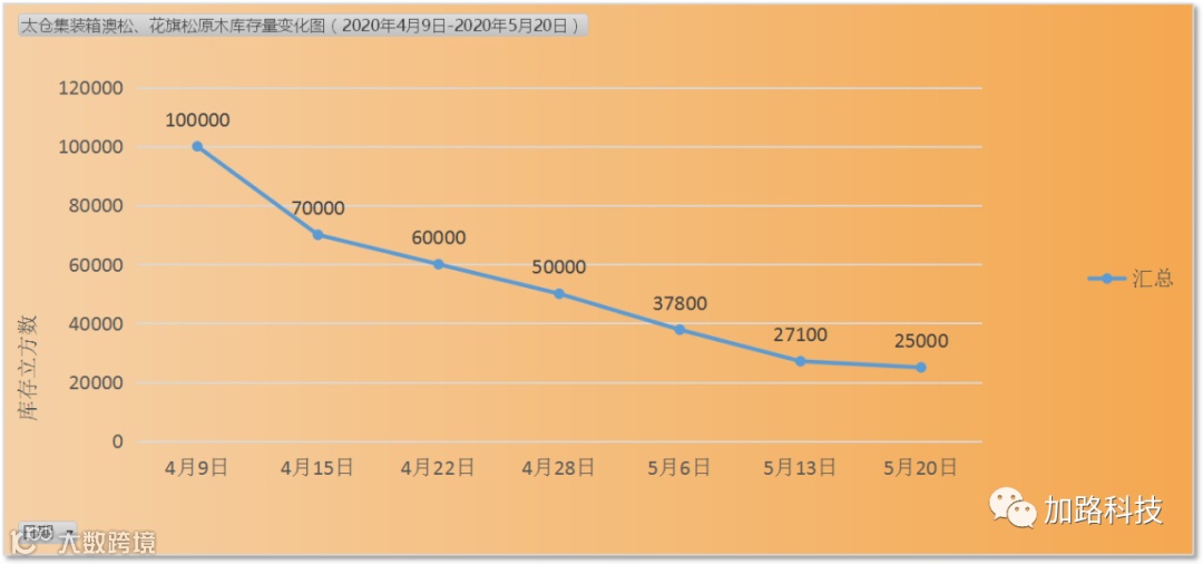 太仓 集装箱澳松、花旗松原木库存量变化图(2020年4月9日-2020年5月20日)