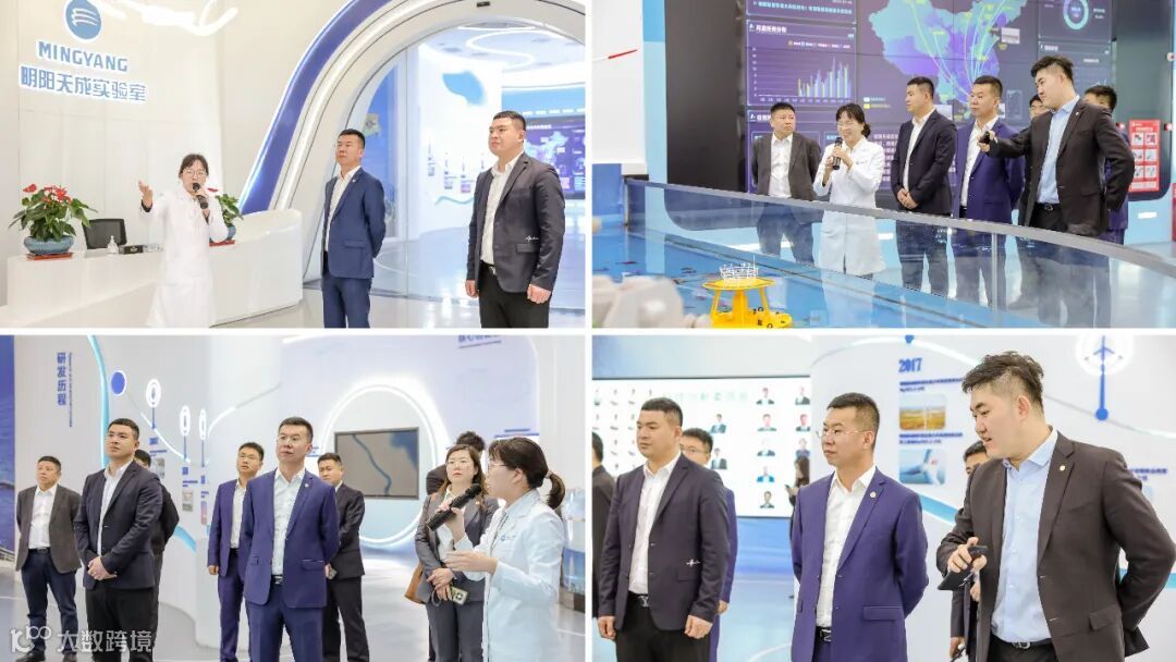 王伟董事长一行对明阳集团天成实验室、海洋综合能源与绿电化工零碳园区沙盘、芯片产业中心及大数据中心等进行了参观,详细了解了明阳集团风、光、储、氢、海洋牧场装备等的技术创新及建设经营情况,并与明阳集团董事、高级副总裁张瑞进行了座谈交流。
