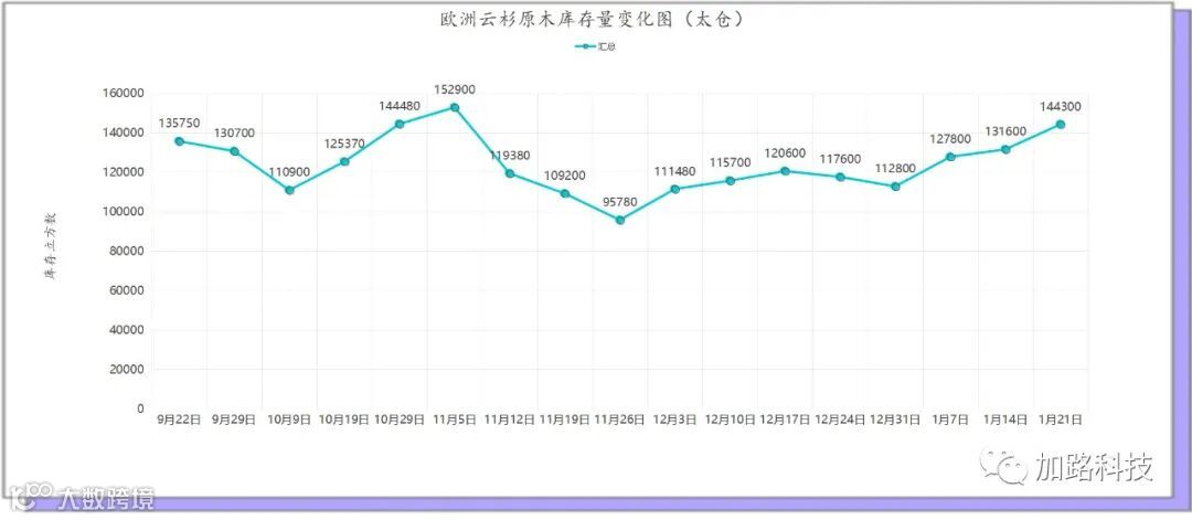 欧洲云杉原木库存量变化图-太仓