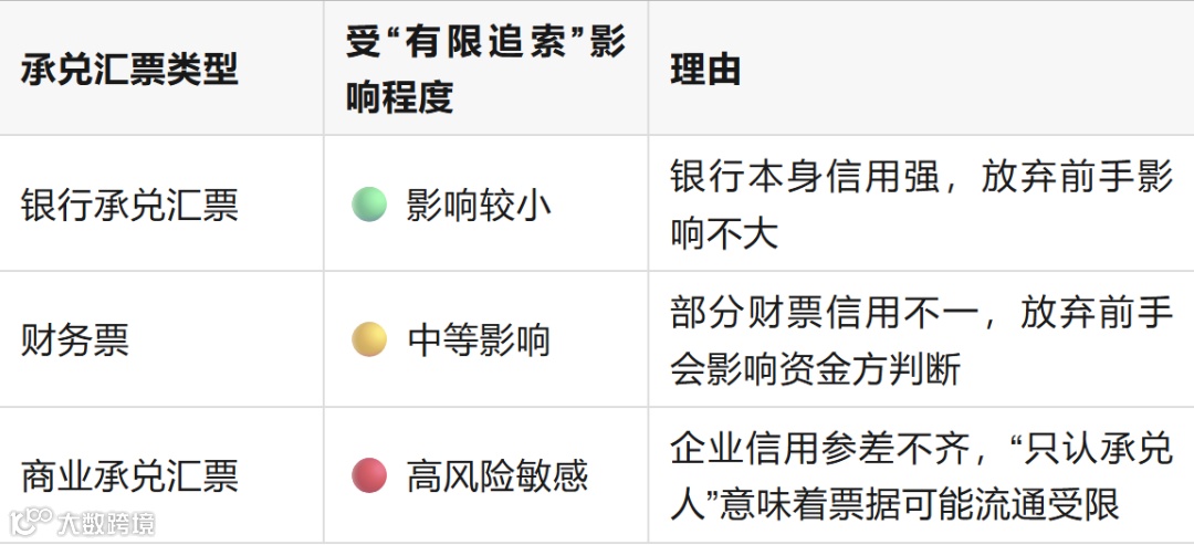 在传统多责任人结构中,票据的风险是“多点分散”,但在“有限追索”制度下,风险被压缩到“单一承兑人”。