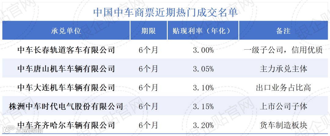 再贴现通道畅通:中车票据被多数国有银行视作“优质再贴现资产”;