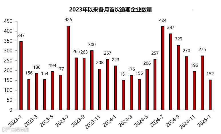 152家企业首次发生逾期,较上月减少123家,降至两年来最低。