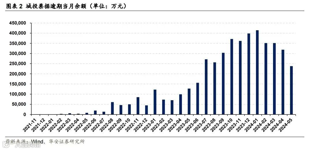 华安固收研报最新数据显示,2024年5月份,共有34家发债城投公司出现承兑人逾期现象,逾期金额达到83936万元。这是承兑人逾期情况的连续增长,显示出发债城投的流动性压力正在上升。