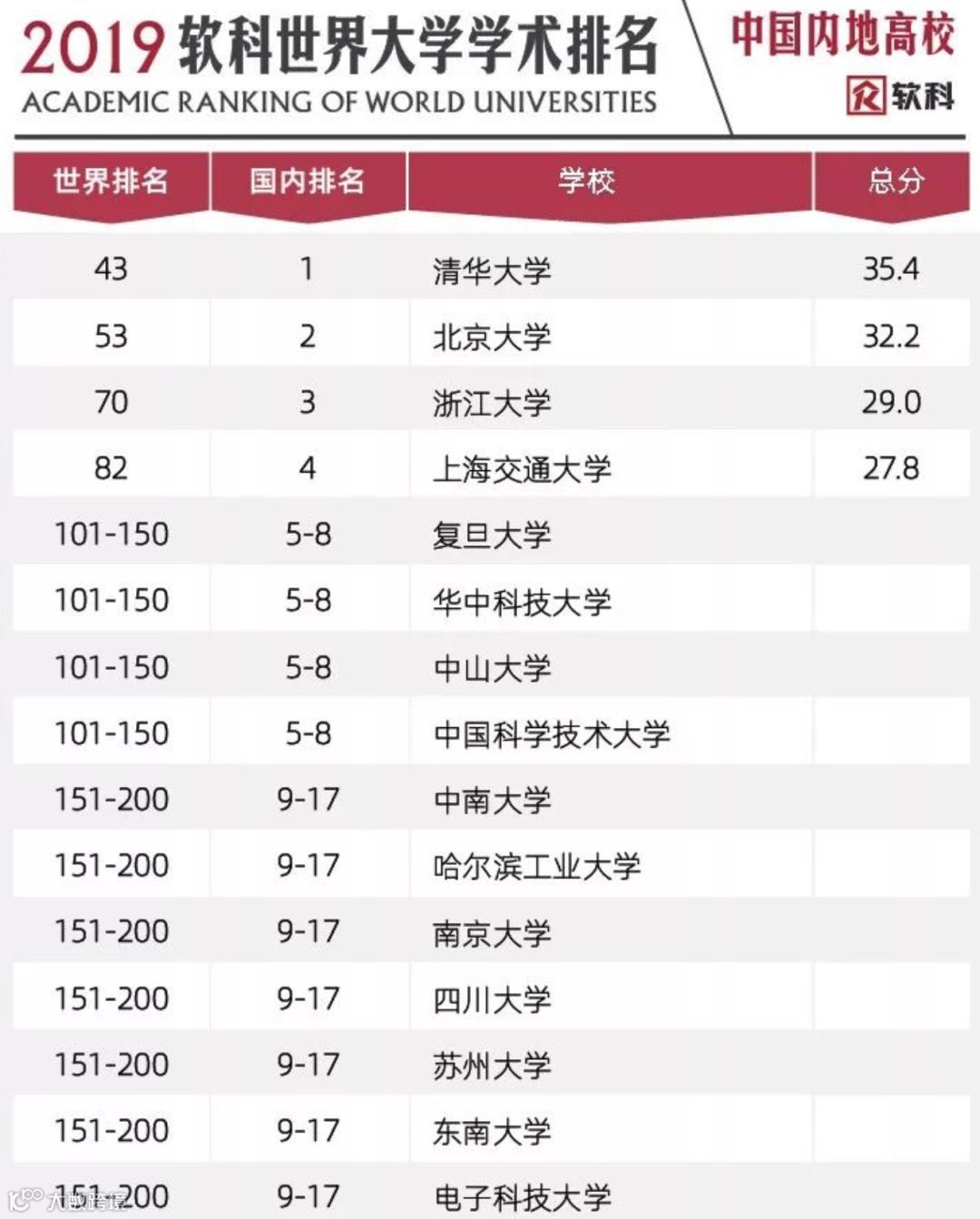 2019 软科世界大学学术排名发布,中国内地 132 所大学上榜