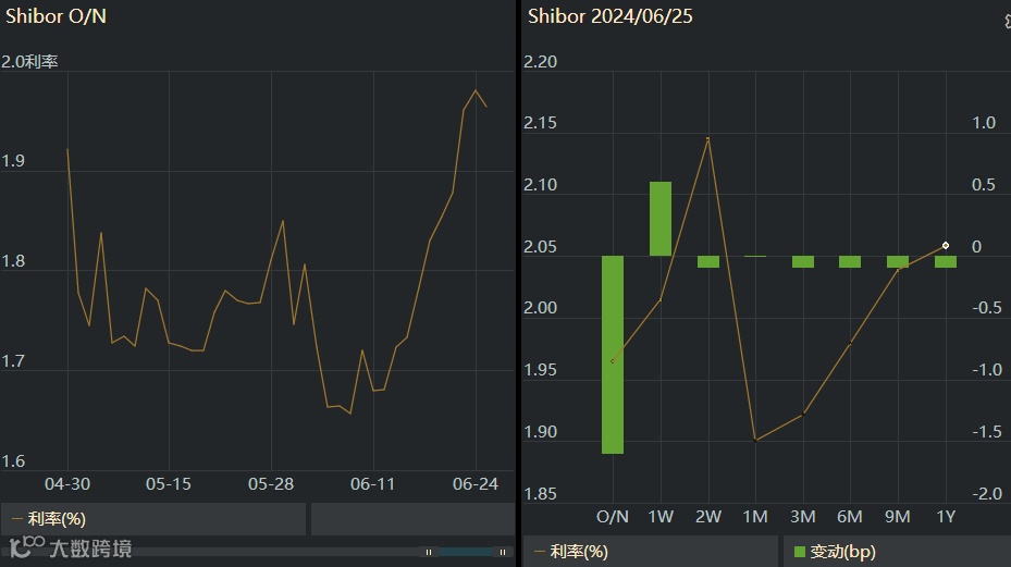 6个月利率下降9个bp至1.33%。