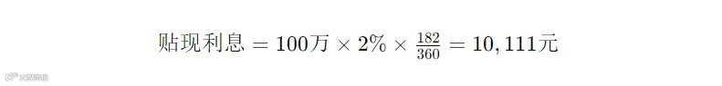 举例来说,一张票面金额为100万元的承兑汇票,离到期日还有182天,贴现利率为2%。计算方式如下: