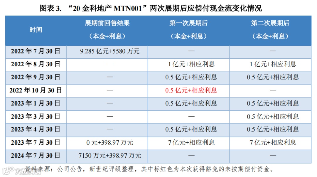 11月9日,金科股份召集召开“20金科地产MTN001”第三次持有人会议。根据会议决议,“20金科地产MTN001”第二次变更兑付方案并对未按期偿付事件进行豁免。在二次展期后,金科股份将于2023年1月30日起陆续偿还该支中期票据剩余部分本金。