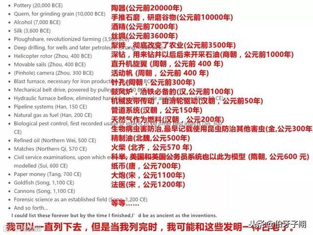 还有老外直接列了一长串的中国古代发明表,并说道: