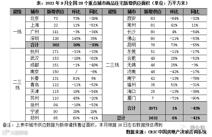 二三线城市的供应总数也有一定的回升,据数据显示,其中24个监测城市九月供应总面积2071万平方米,环比微增1%。