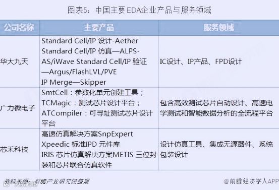 中国主要EDA企业产品与服务领域