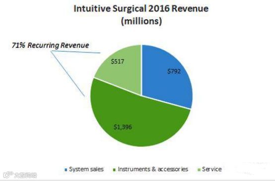 直觉公司2016年销售额7.92亿美元,其中最赚钱的是备件和耗材,占比50%之多。