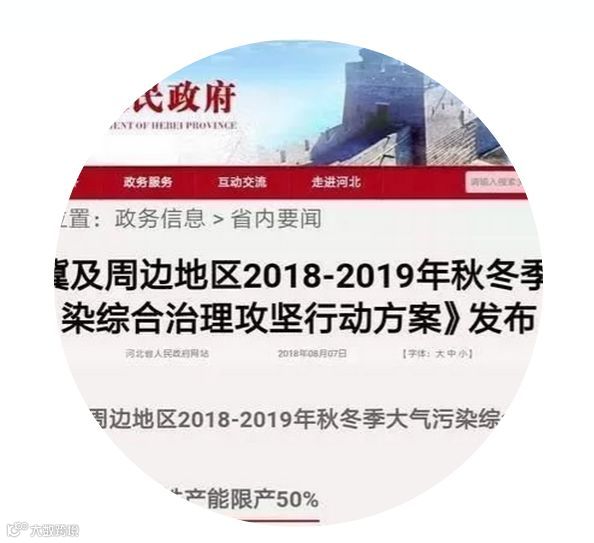 采暖季限产时间:2018年10月1日至2019年3月31日