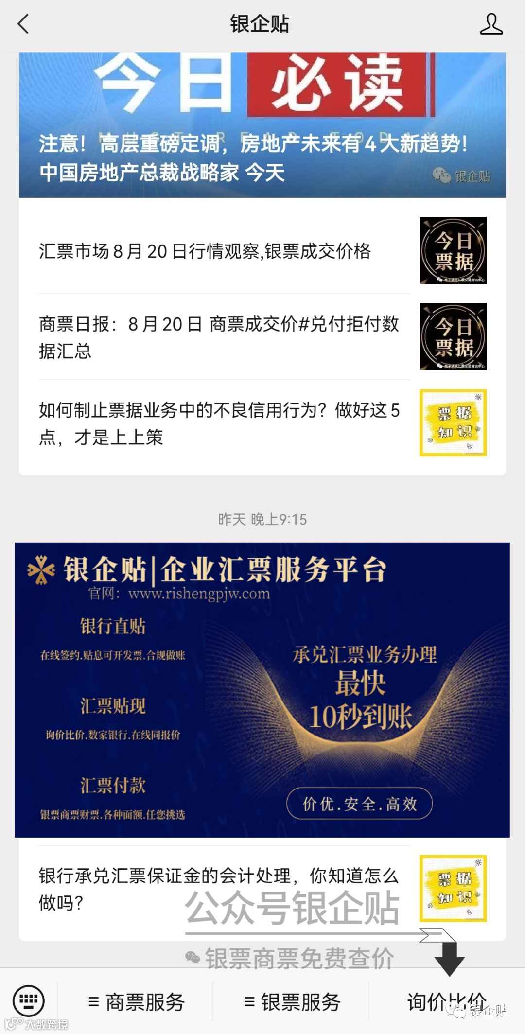 更多票据价格请关注银企贴免费查看