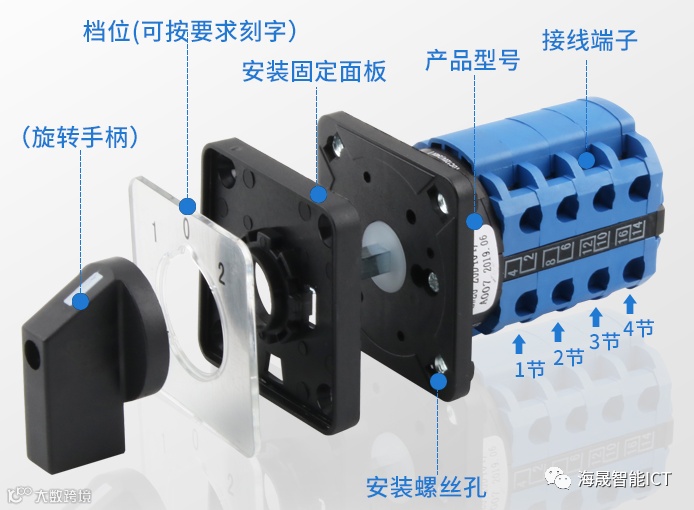 当输入信号接到CE管脚后,通过旋钮开关(0~6)共计7个档位,依次为空档、E1档、F1档、G1档、H1档、I1档、J1档,每手动旋钮一次,就可以选择对应的输入和输出。