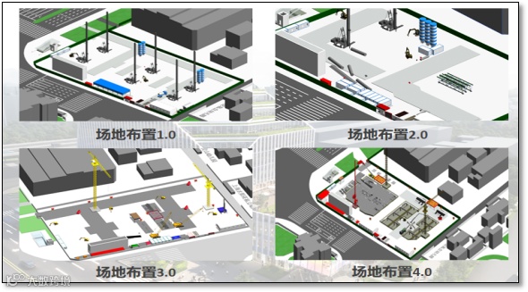 以施工单位提资场布平面布置图和无人机实景照片作为依据,搭建BIM场地模型共4版(分别为桩基施工阶段场布、基坑开挖阶段场布、地下室A区主体施工阶段场布、地下室A地上和B区地下室施工阶段场布),对施工现场及周边建筑进行还原,在有限的红线范围内优化施工场地布置,节省工程造价约20余万元,提前完成临设和材料堆场搭建,为创建文明工地打下基础。