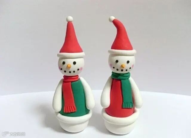 首先用白色粘土搓两个小圆球作为雪人的头部,然后加上可爱的红色小帽子和简单的五官。为了使做出来的雪人更美观,建议将雪人的头部尽量搓得圆一些。