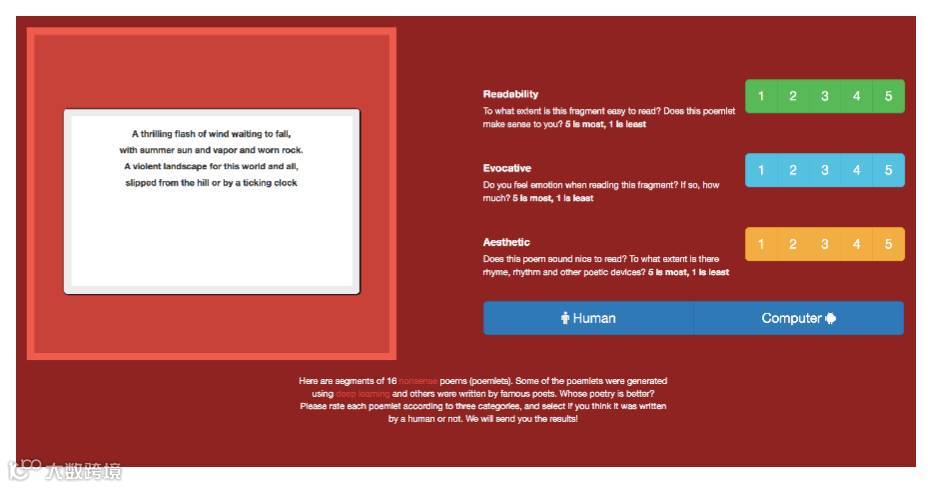 图5:要求受试者区分自动生成诗歌和人类诗歌的实验环境。