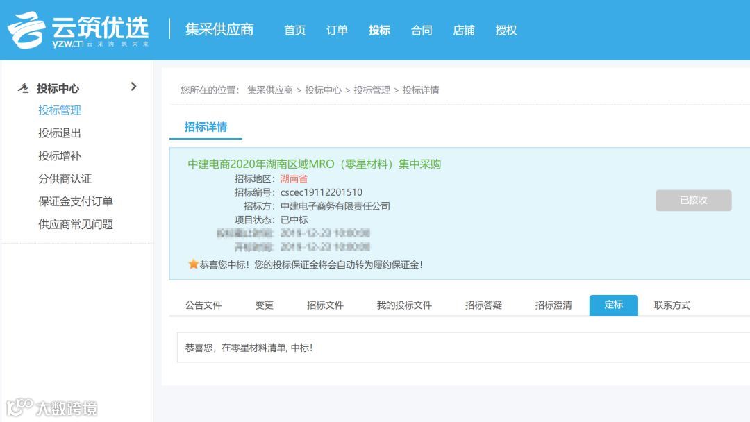 新年开好头,近日在频频传来的好消息中,申合信集团再次中标中建电商2020年MRO(零星材料)集中采购项目湖南省和河南省两个区域。