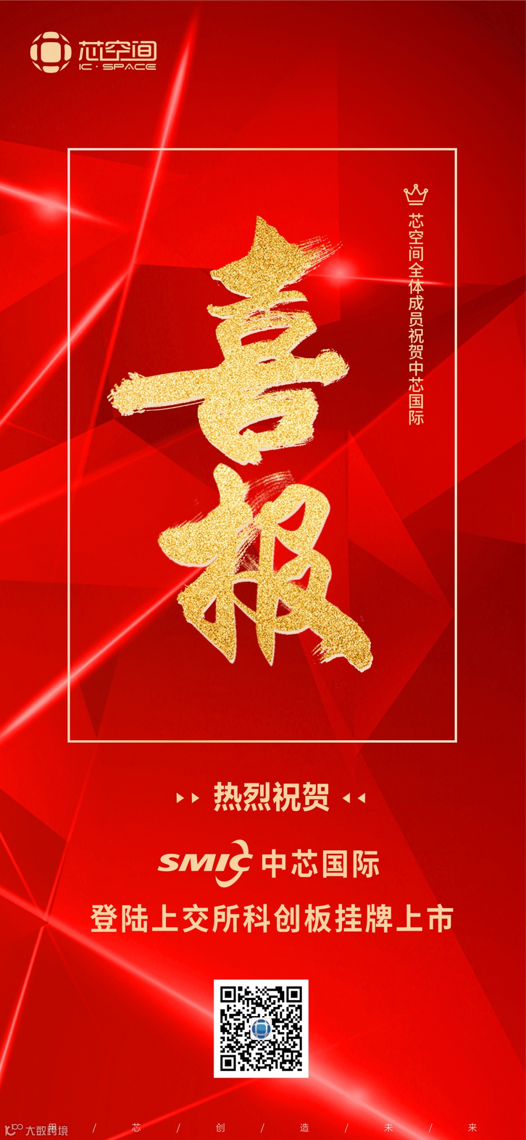 芯空间全体成员热烈祝贺中芯国际集成电路制造有限公司成功在上海证券交易所科创板挂牌上市!据了解,本次发行后,中芯国际成为科创板首家回归A股的境外已上市红筹企业。