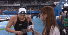人们喜欢这个小丫头,总是戴个虎头帽,总是咧开嘴傻笑,憨憨的。每次她游完,观众就大喊:“傅园慧!再扔点礼物过来!”然后上前争着跟她拍照。