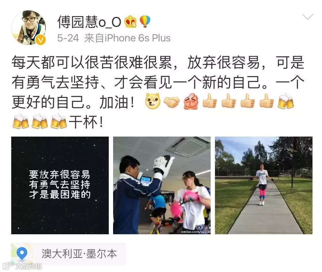 集训时 傅园慧发了这样一条状态