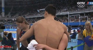 傅园慧比赛结束后与已经夺得金牌的孙杨拥抱