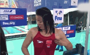 15年,喀山游泳世锦赛上,她摘走了女子50米仰泳金牌。也就是那次接受采访时,她被泳衣弹到,疼得龇牙咧嘴。大家因此记住了这个率真又不失可爱的姑娘。