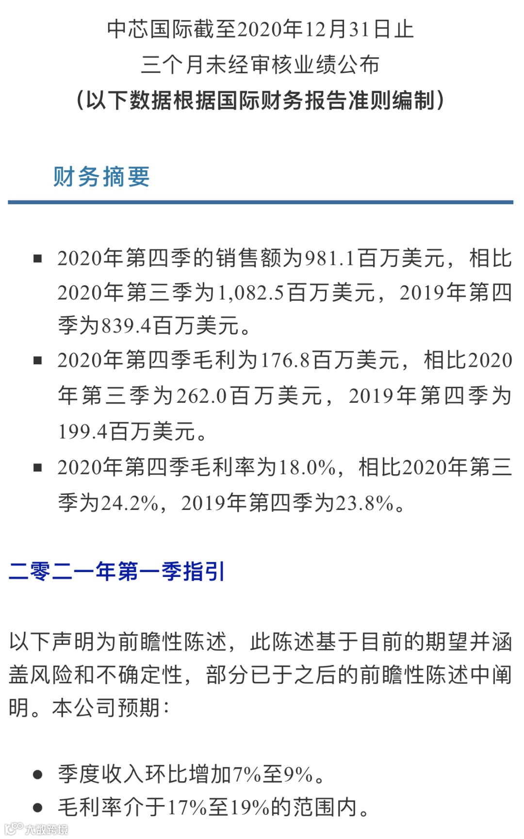 今天 (2 月4 日), 中芯国际发布2020年第四季财报。根据财务指标来看,2020年中芯国际第四季的